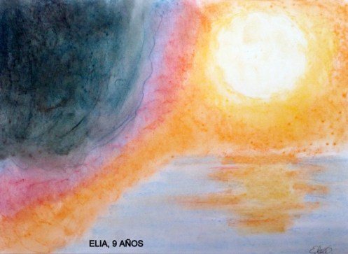 Elia tiene 9 años y me ha dejado un dibujo muy expresivo y con unos colores muy artísticos sin duda, ha pintado la luz y las sombras, el sol y la tormenta. A ella le dedico el siguiente poema: