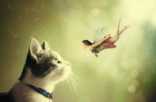 Escogí esta foto de Internet que se llama «A touch of magic», no conozco a su autor, Neighya, pero me gustó mucho, porque no es fácil hablar de los gatos, cuando tanto se ha dicho de ellos. Y estoy segura que vosotros, mis amigos niños, todos o casi todos, tienen un gato en su vida. Pero lo que no sé si han tenido alguna vez cerca, es un hada. La foto, da para crear, para la fantasía, y como todos podemos imaginar el diálogo, pues tenemos vía libre para dar rienda suelta a la imaginación. Yo os dejo el mío. Describe cómo es tu gato y después crea ese diálogo entre el hada y el popular felino.