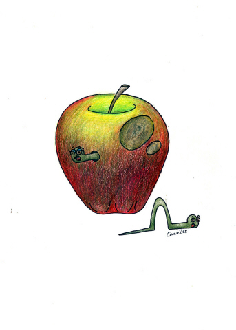 Entonces les decía que Gusanita había horadado su cueva en la manzana.