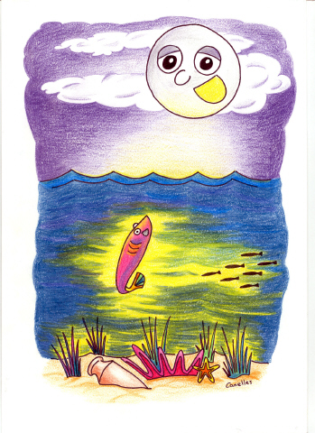 Mucho después, un Pez, se enteró que en Taragudo había una Laguna subterránea, y muchas noches, siempre con ayuda de Lunita Triste, salía a la superficie y es así como podían verse las piruetas que Pez bailaba en el agua…