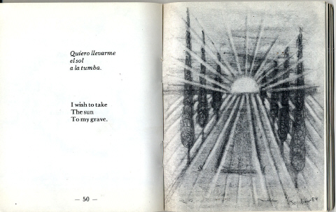 I went to Petaluma (California). I was invited by Beatriz Lagos and Antonia Barata. We went to Bodega Bay where I was inspired to write these poems. One day in particular, the sea was menacingly furious spitting seafoam on the bald rocks and cliffs, I walked along the water, mischievously challenging the sea. The sea, annoyed and insulted, however, chased, dragged and briefly pulled me deep into its dark mouth. It was during the storms that ocurred in California in 1983. The experience was unforgettable. I emerged wet, cold and frightened. There at the beach tha first verses of my poem were born in front of the angry sea… I miss the land , the almond tree of Castille blossomed, I miss my house… Because I have survived my own death. I find no reason to cry. Rather I will rejoice. My poems then are neither sad nor tearful. Yes, I wanted to think that I was already dead, in order to know how much I could for myself. And because I do not find any reason to cry, my book doesn´t pretend to be a sad one but instead, serene smile that would express, with its soul, the acceptance of death as the most important and decisive part of life. I have discovered that light is the other part of myself. Light belongs to me long before I was born.